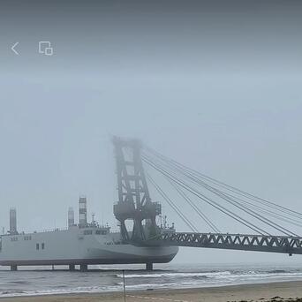 根据外媒说法,这种驳船堪称军事界的“变形金刚”。它本就是大型滚装船,肚子里可以塞满主战坦克,可一旦靠近海岸,就能立刻“变形”伸出120米长的钢铁栈桥,或连接前一艘驳船,或在岸边固定。这样一来,解放军就将能在台岛的所有海岸登陆,不用管水深是否适合停靠大船,或者岸边的松软地质和滩头防御工事是否阻碍登陆——只要搭上超长路桥,就能越过一切障碍。